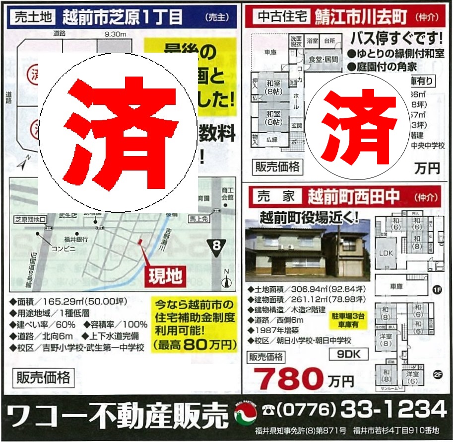 HOME館/ワコー不動産販売部 〒918-8055 福井県福井市若杉4丁目910 TEL:0776-33-1234